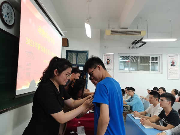 宣誓仪式在雄壮的《国际歌》声中拉开序幕。入党宣誓仪式,是新党员加入党组织的必经程序,也是新党员向党表明心声和接受教育的一次极好机会,具有特别的意义。员工第一党支部书记张粟致辞后,支部老党员严肃、认真地为新发展员工党员佩戴党员党徽。随后,张书记带领新党员和全体党员面对鲜红的党旗进行宣誓,新同志许下自己的誓言,老同志重温入党誓词。全体党员右手举拳,面对鲜红的党旗,许下铮铮誓言。声声誓词表达了大家对党最忠诚的决心。仪式后,张书记总结说,入党宣誓是一名党员政治生命开始的象征,我们每一位党员都要永远记住这个神圣的时刻,并激励大家要不断增强党员意识,充分发挥党员的先锋模范作用。