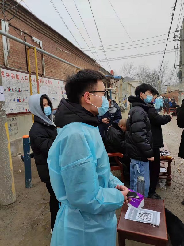 寒假期间,河南疫情再度爆发,beats365官方网站2021级动物科学专业02班学子王海洋作为一名老员工,深知自己的责任和义务,在疫情防控期间,响应乡政府的号召,王海洋毅然决然的加入了村老员工抗疫志愿者团队,为自己的家乡贡献一份力量。从2022年1月2日开始,王海洋和另外五名老员工一起组成的老员工抗疫志愿者团队,开始在村干部的领导下,带上袖章,戴上口罩,在主要十字路口,进行值守,对村内来往车辆进行登记和盘查,同时为村里外来人员进行信息登记,并测量体温。王海洋说道:“平凡铸就伟大,英雄来自人民。”疫情防控没有旁观者,同心战疫是青年成长的“试金石”“检验场”,同时也需要每一个群体、每一个人贡献自己的力量。虽然说疫情依旧严峻,但我们要相信,只要我们坚持,胜利终是我们的。2003年的“非典”都已成为过去,冠状肺炎也终将远去!