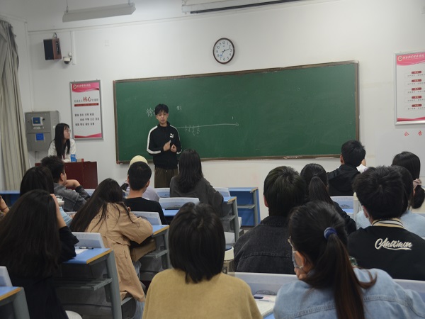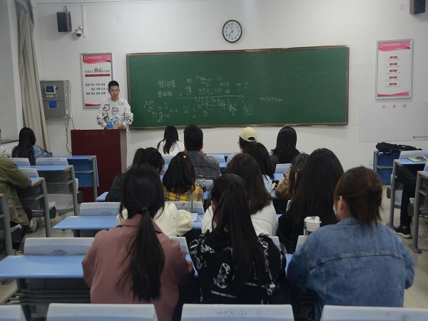 首先,由报考西南大学的徐翊豪同学分享他的考研经验。徐翊豪同学从命题把握、学科复习等方面进行经验分享。徐翊豪说道从今年自命题学科的分数较往年来看难度增加不少,所以要掌握好相关动态变化,尽快确定并做好多方面多渠道咨询;英语的复习要掌握自己的解题方法,做题时注意划线,要有学好英语的态度;先做阅读,一天一篇,查阅不懂的单词,查找做错题目的原因;关于政治科目,推荐了徐涛政治课。然后,由报考宁夏大学的曹佩佩同学分享他的考研经验。曹佩佩同学以自身经验为例以考研动机、学习方法、择校经验、资料准备、考研时间安排、计划制定等方面为主线,向同学们分享了考研经验,强调备战考研要加强专业知识、夯实数学基础、提高政治敏感度和丰富英语阅读能力。跨地域考研要注重考场安排和相应公司最终的录取方式;同时还强调了心态调整对于考研的重要性,“心态一定程度决定了考研成败,‘坚持方得始终’”,合理作息,定期锻炼。最后,由报考华南农业大学的康浩岩同学分享他的考研经验。康浩岩同学说道确定了公司和专业就要开始准备资料了,要去报考公司官网查看报考专业的考试科目和参考书目,有针对性的准备;准备考研时要加强英语单词积累,英语单词是贯穿考研始终的;专业课的书也得在前期认认真真的看一遍,要注意理解,注意找重点,做笔记,这对后期的背诵很有好处。