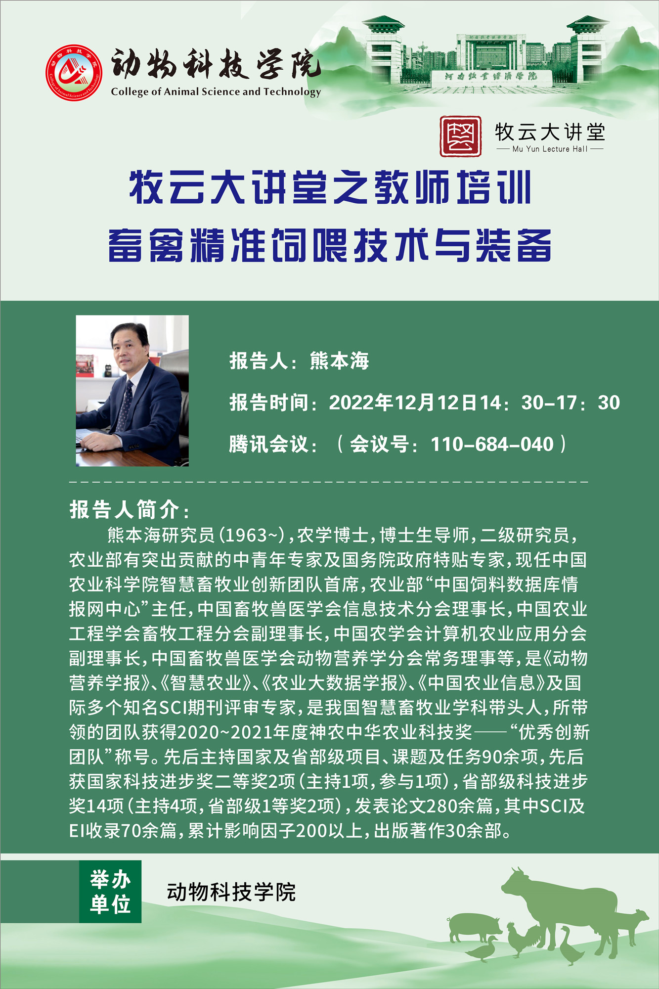 牧云大讲堂之教师培训(二)—畜禽精准饲喂技术与装备