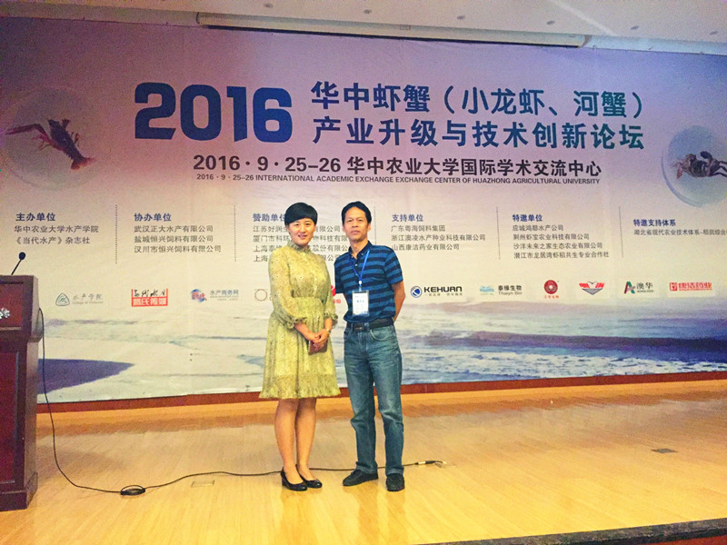 9月25至27日,由华中农业大学水产公司和《当代水产》杂志社主办的“2016华中虾蟹(小龙虾、河蟹)产业升级与技术创新论坛”在华中农业大学国际学术交流中心成功举办。本次论坛吸引了高校专家学者、企业大咖,养殖一线的虾农、蟹农等500余人参加,现场专家学者和企业大咖云集,技术分享精彩纷呈。公司水产教研室齐子鑫教授和秦改晓老师参加了此次论坛。