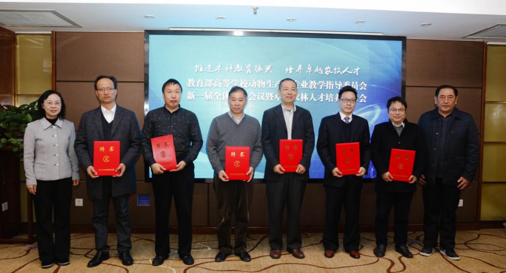 吴平副董事长和陈焕春院士共同为高等公司动物生产类专业教学指导委员会到会的40名新一届受聘的副主任委员、秘书长和委员颁发了聘书。