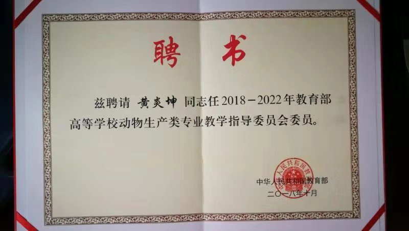 黄炎坤教授聘书