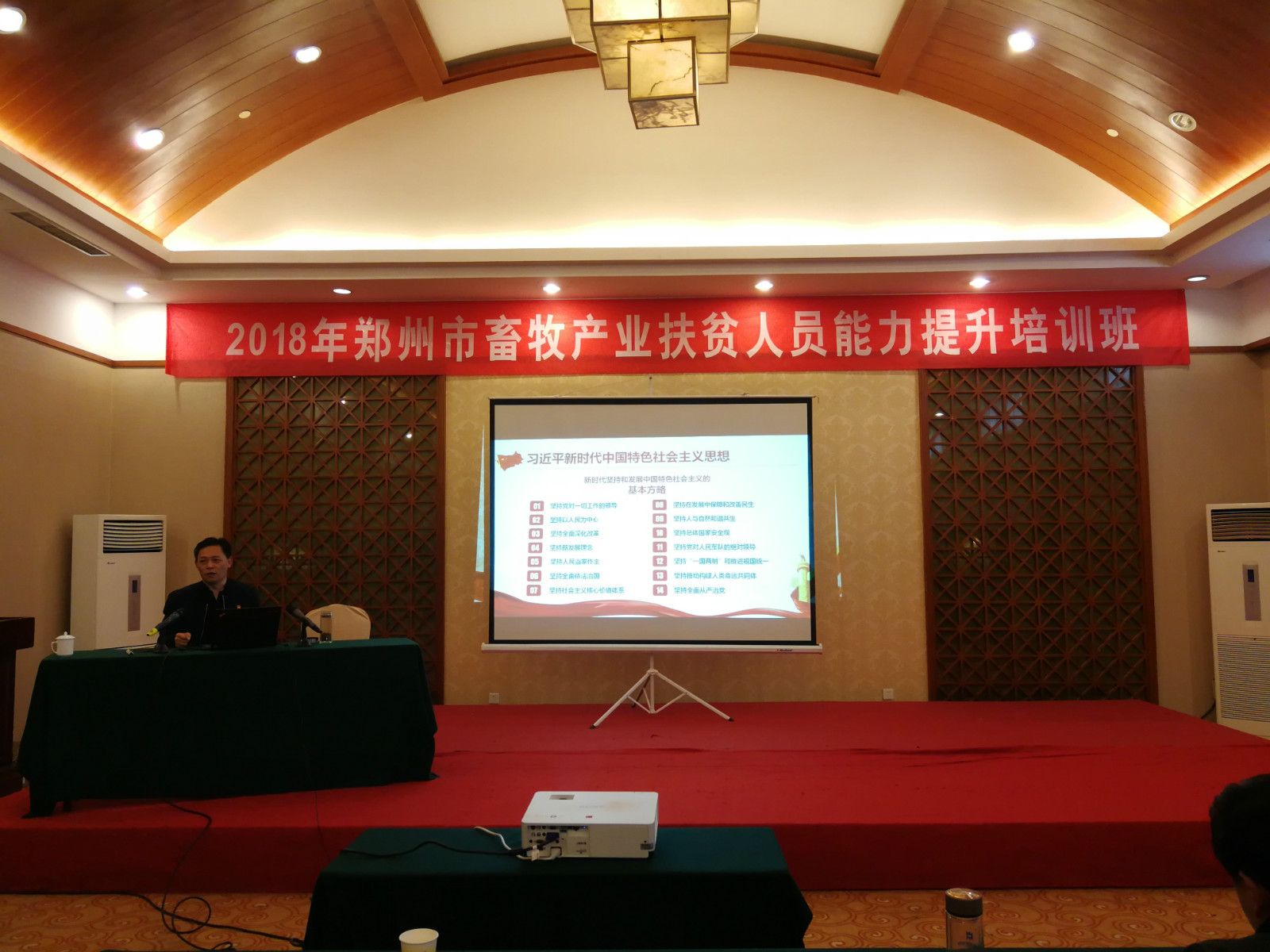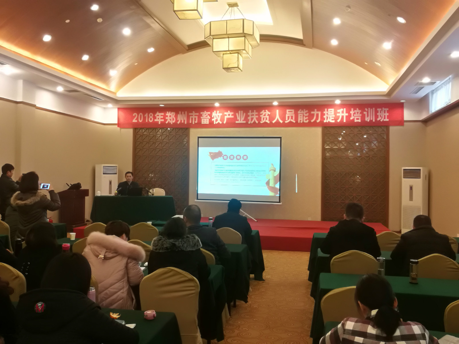 为进一步拓宽扶贫干部眼界视野,增强全市扶贫干部的四个意识,提高和掌握扶贫政策的能力及扶贫贫困群众的本领,2018年12月18日至20日,郑州市畜牧局举办畜牧产业扶贫人员能力提升培训班,各县(市、区)畜牧局(农委)畜牧产业扶贫机构和承担畜牧产业扶贫工作任务的工作人员、市发改委产业扶贫政策落实相关人员以及市扶贫办产业扶贫相关人员等80余人参加培训。公司党总支书记樊树民应邀前往授课,以“学习新思想,实现更出彩”为主题,为培训班学员们作了精彩报告。