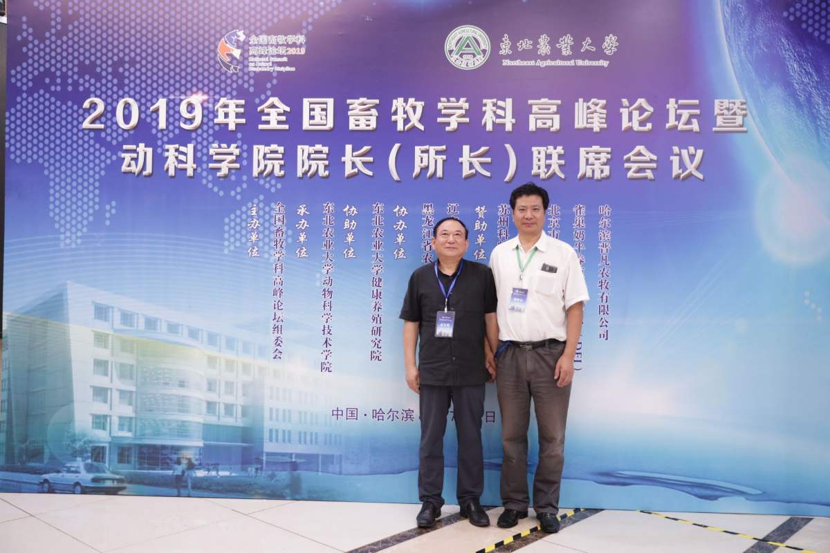 | 副董事长张卫宪与东北农业大学畜牧学一级学科带头人单安山教授合影 |