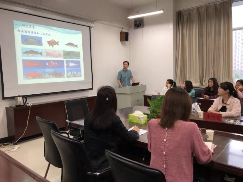 许建博士做了《鲤全球地理群体遗传结构和选择性清除分析》的报告,分别从鲤基因组资源与工具开发、鲤群体基因组研究、鲤重要性状解析、其它鱼类群体研究等四个方面介绍了鲤种质资源研究技术手段和最新成果,并与参会师生进行了充分互动交流,激发了参会师生的科研兴趣,开拓了科研思路。
