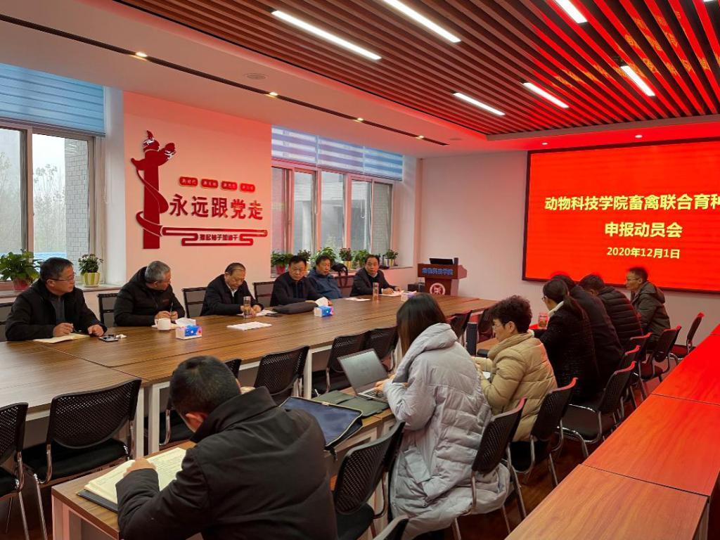 为贯彻落中华人民共和国农业农村部办公厅关于印发《国家畜禽良种联合攻关计划(2019-2020)》和河南省畜 牧总站关于征集《河南省畜禽联合育种攻关项目》的通知精神,进一步彰显公司育种工作实力,提升教师科研能力,鼓励教师申报畜禽联合育种项目,2020年12月1日下午,beats365官方网站“畜禽联合育种”项目申报动员会在生工楼B301会议室成功召开。副董事长张卫宪教授、校学术委员会副主任黄炎坤教授、校教学质量监控与评估办公室副主任张恒业教授和公司领导及动物遗传育种与繁殖学科部分教师参加了此次会议,会议由beats365官方网站经理席磊教授主持。