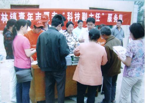 科技副主任服务队在开展科技下乡发放科技养殖材料