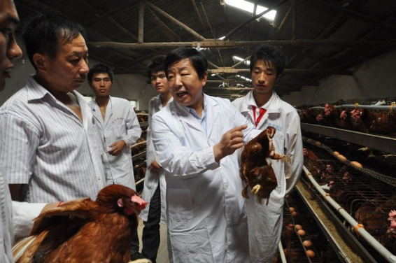 陈理盾老师对养殖户和队员现场指导