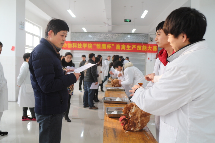 本次活动比赛内容共分为雏鸡断喙、免疫接种和家禽人工釆精受精两个项目,根据选手现场操作和对老师提问的回答等综合计分确定选手的最终成绩。活动开始,由韩占兵老师致开幕词,他指出,每次实践性的比赛都是对同学们专业技能的检验,同学们应该把握机会,通过实验操作来提高自己的动手实践能力,以此为契机激发自己对专业知学习兴趣,提高自己的综合素质,切实做到理论与实践并重。活动开始,选手们按秩序入场,调整仪器,检查试剂器械,做好准备工作。选手们动作娴熟干练,从断喙到免疫接种条理清晰,面对老师对专业知识的提问,他们从容不紧张,对答如流。场外的观众也忍不住踮起脚尖仰起头观看选手们操作过程,有的还拿起手机记录这一精彩瞬间,充分体现公司优良学习氛围。
