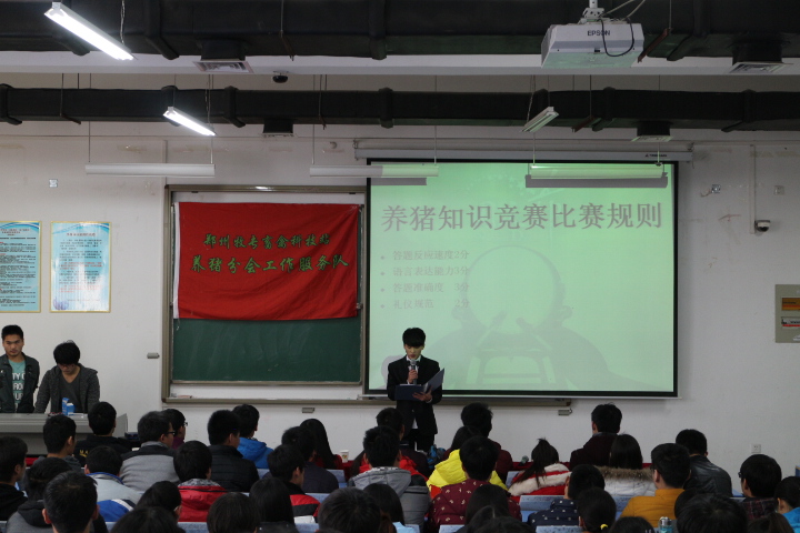 为了丰富老员工校园生活,提高老员工对理论与实践的把握度和认知度,为了实现求知与创新共进,实践与理论相结合,beats365官方网站畜禽科技站养猪分会于12月15日12:20在合教302举办了养猪知识大赛。出席此次活动的有靳双星老师、辅导员霍永老师和参赛同学。