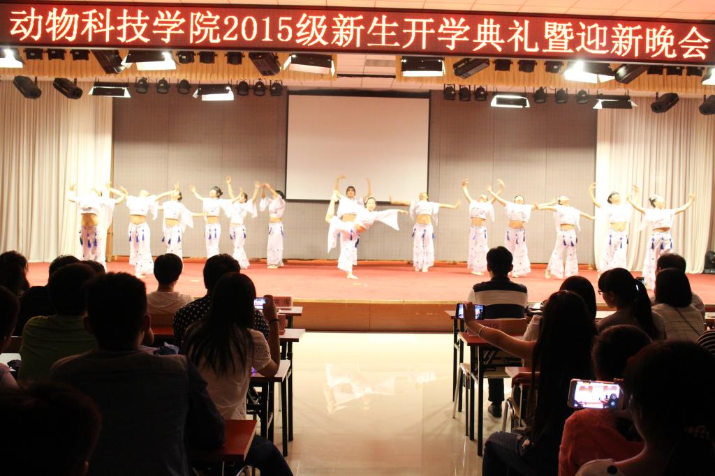 简洁又隆重的开学典礼结束后,15级新生也为老师及同学们准备了一场精彩的文艺演出。民族舞《神话》中,演员们用婀娜的舞姿将中华文化的艺术魅力表现的淋漓尽致,博得了现场的阵阵掌声;相声《满腹经纶》告诉大家学习不能张冠李戴,要好好的理清每一个思路,记牢每一个知识点,不能混为一滩,否则害人害己;小品《试镜》把一阵阵欢声笑语带给现场的师生们,将晚会推向了高潮;一首歌曲《朋友》在浓浓情意中结束了整个文艺演出。