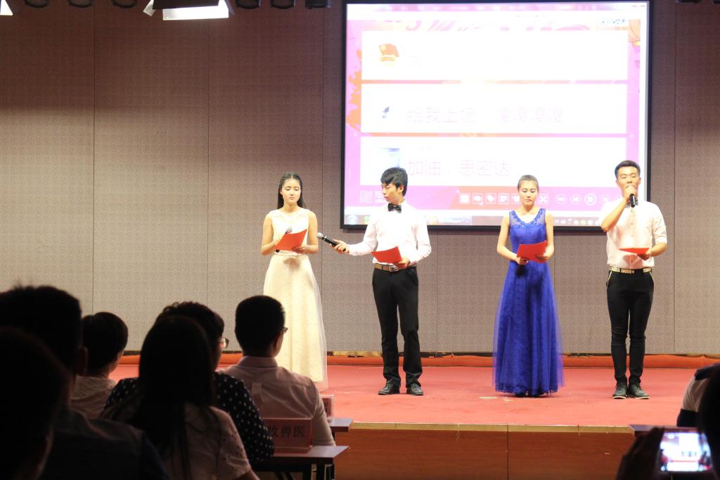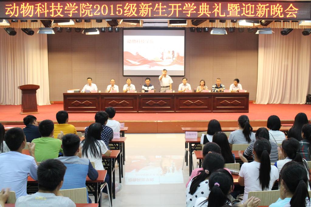 大会由团总支书记王鑫磊主持。在庄严的中华人民共和国国歌歌声中,全体师生起立,共同唱响了那首熟悉而又催人奋进的歌曲。国歌奏唱完毕,接着就是新生发言。15动科1班的郭倩文对动物科学专业有着自己深刻的理解,她代表全体15级新生做了简要的发言,她说道:未来的路需要我们一步一个脚印去走,我们会踏踏实实的在公司全体老师的关怀下,学好本领服务社会。作为15级动科专业的班主任,徐秋良老师也准备了一些话语告诉同学们,徐老师说:在座的一个个充满对知识渴望的新面孔,作为老师,总是有说不完的嘱托,每年都有新面孔的出现,逐渐变熟悉,然后离开公司,驰骋于更广阔的天地。但是,每次面对新同学的时候,老师依然是内心激动和喜悦的,因为你们是承载着希望和未来的一群人。