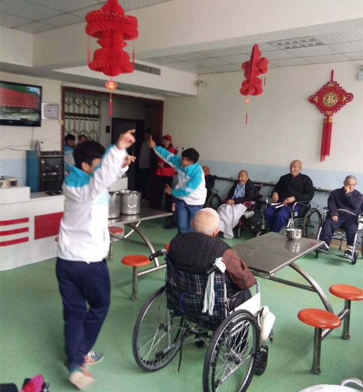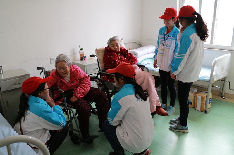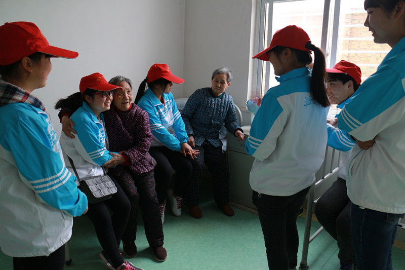 早上7:30志愿者就来到校中心花坛集合,简单整理后就出发了。我们的志愿者不怕脏、不怕苦、不怕累,经过一个多小时的徒步行走于上午9:00到达目的地。由于天气有点冷老人们大多都在公寓内没有出来,院子外面只有零零星星的几个老人,看到志愿者的到来他们脸上露出了灿烂的笑容。随后,大家在经理的带领下来到公寓里面看望年迈的老人,有的志愿者和老人亲切交谈,认真聆听老人那些光辉的岁月,并向老人家讲述自己在大学里的有趣故事;有的为老人捶背捏肩;有的为老人端茶倒水,有的为老人整理床铺等等。同时,我们的志愿者们还为老人们精心准备了歌曲、舞蹈、戏曲等精彩节目,在歌声与欢笑中将暖暖的亲情注入到每个老人的心田,老人们的脸上露出了久违的微笑,整个敬老院都沉浸在温馨的气氛中。美好的时光总是很快过去,志愿者们将要走的时候,老人们都依依不舍,有些老人甚至掉下了眼泪,与志愿者们恋恋不舍地挥手道别。