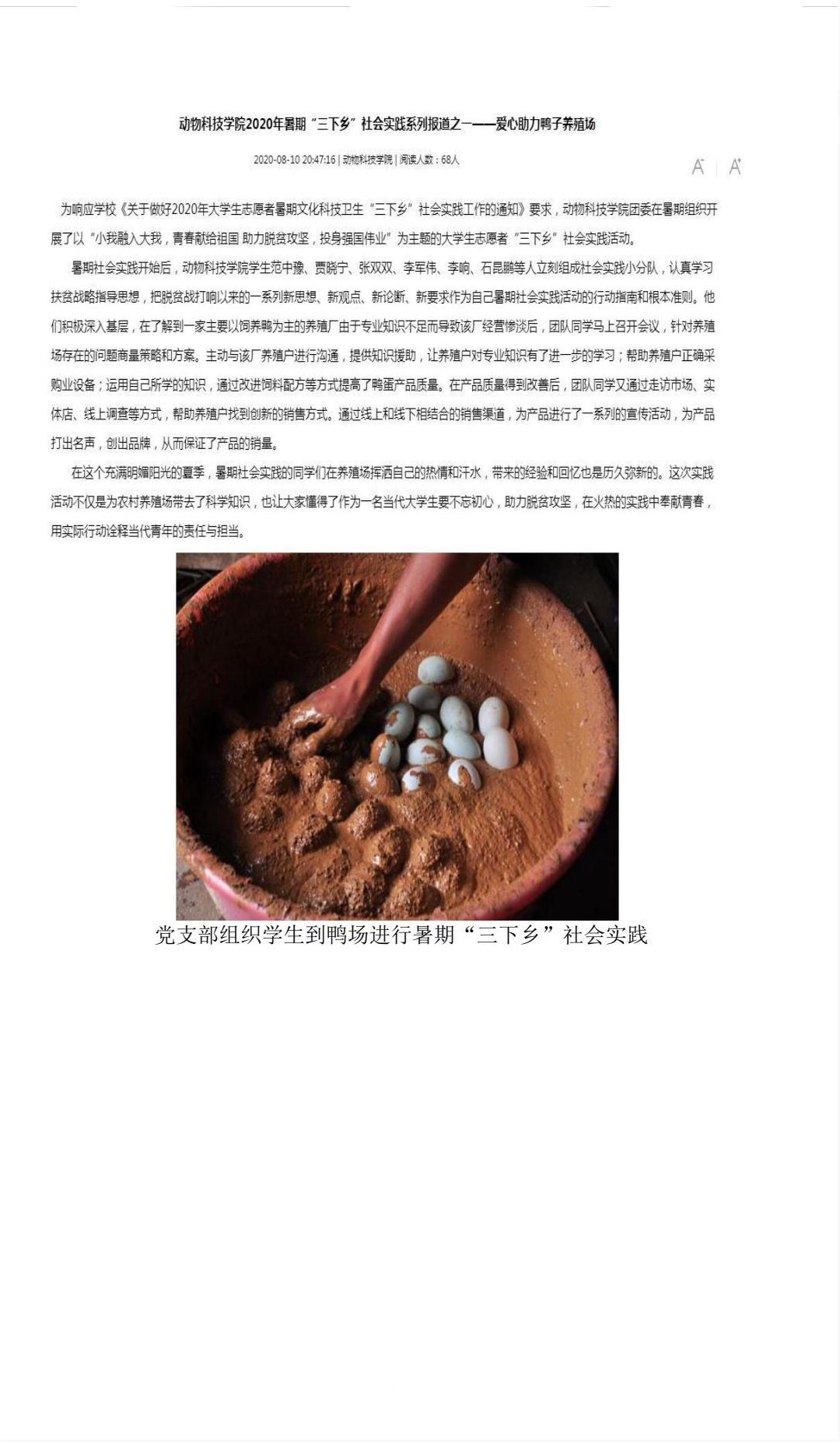 beats365官方网站2020暑假“三下乡”社会实践系列报道之一——爱心助力鸭子养殖场
