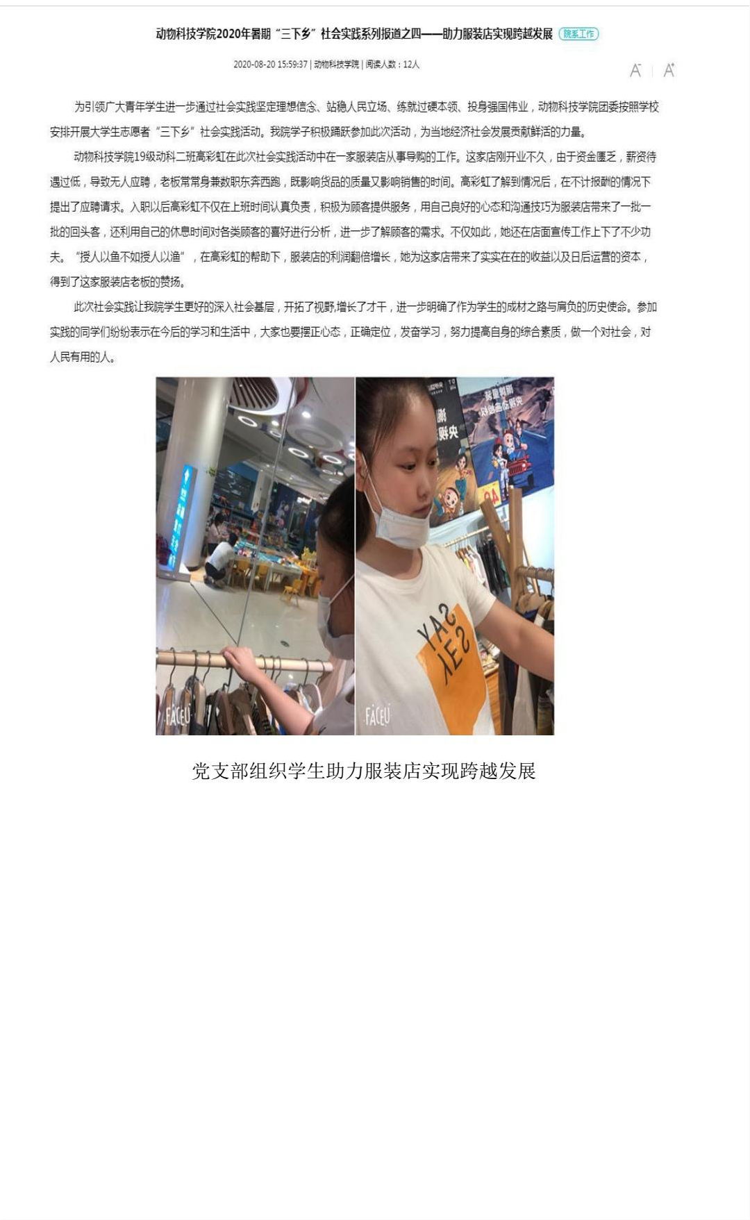 beats365官方网站2020暑假“三下乡”社会实践系列报道之四——助力服装店实现跨越发展