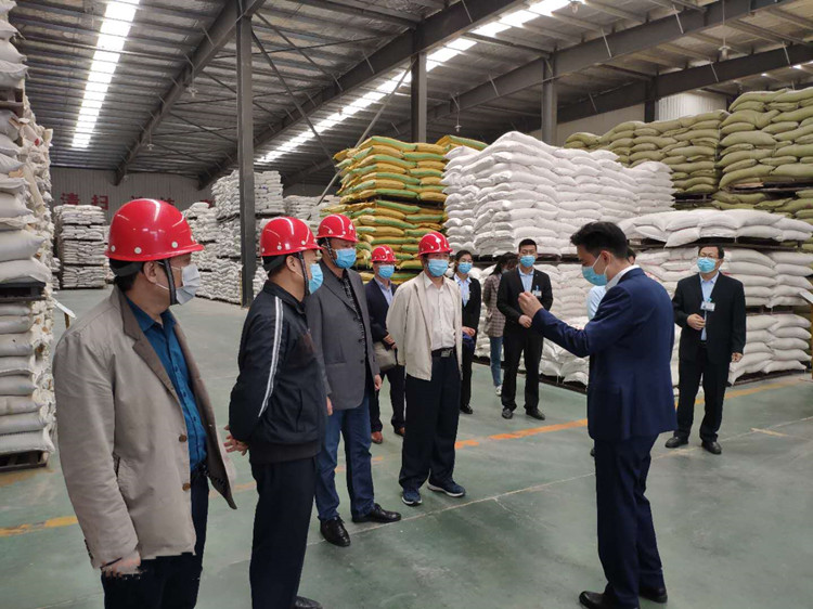 中原邦农饲料有限公司董事长杨青山对王建伟书记一行的到来表示热烈欢迎,并带领大家调研了公司的饲料加工车间、原料库、成品库、自动化机器人包装系统、猪病健康检测中心和饲料检测实验室等地。