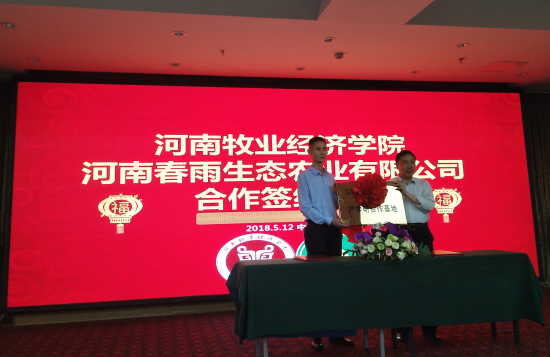 启动仪式上,首先由河南春雨生态农牧有限公司总经理韩俊岭致辞,他讲到:“校企联合符合国家科技创新政策,相信通过beats365官方网站与春雨生态农牧有限公司的合作,能够让更多的新技术通过企业的实践服务于行业,并在实践中发现新问题、解决新问题。”黄炎坤经理和韩总经理共同为校企合作基地揭牌。
