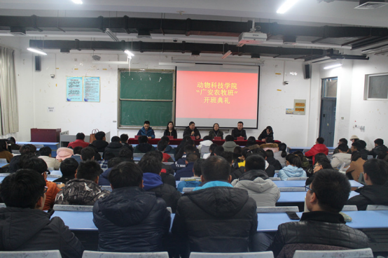 典礼开始,经理黄炎坤发表致辞,对企业领导的到来表示欢迎,对广安农牧集团为校企合作所做出的努力表示感谢,对“广安班”学员们寄予了厚望。他说,希望同学们努力提高责任意识,提升专业技能,对自己负责才能对家庭、对国家负责。希望同学们在“广安班”这个新的平台上能够更多了解产业发展动态、了解产业发展对人才素质和能力的需要,能够更多地接触到行业专家的教诲,促进自己的成长。同时提到广安班设有校内班主任和校外班主任,同学们有什么好的建议都可以提出来,衷心的祝愿广安班越办越好。随后,黄伶俐副总裁发表讲话,她说,广安集团致力于动物营养与保健品研发和生产,并不断拉长产业链条,公司已经实现生产,养殖,加工,产品一体化,是国家重点龙头企业。而且广安班的设立对于员工,公司,企业都会产生良好的影响,员工可以在实践中得到知识的拓展,在广安农牧班可以比在校员工更早更好的了解社会。她向同学们提出了四点期望:一是树立人生目标,做好职业规划;二是要有责任感,90后肩负着国家转型的重任;三要积极参加广安班和公司组织的活动;四是以梦为马,不负韶华。把握好自己的青春。随后,学员代表崔玉玉发言,她说机会总是留给有准备的人的,提高专业知识和技能水平、提升综合素质是当代老员工的必修课,每个青年员工都要有理想、有追求、有目标并为之不懈努力。开班典礼结束后,广安集团副总裁黄伶俐开启广安农牧班第一讲《饲料、畜牧行业现状及展望》,她向同学们介绍了饲料、畜牧行业的发展现状、企业基本情况、企业未来、企业文化等内容,公司实行“密集销售,密集覆盖”,在全国各地都遍布自家产业,秉承“快乐养猪”理念,公司坚持广纳英才,公司致力向信息化,智能化,现代化发展。