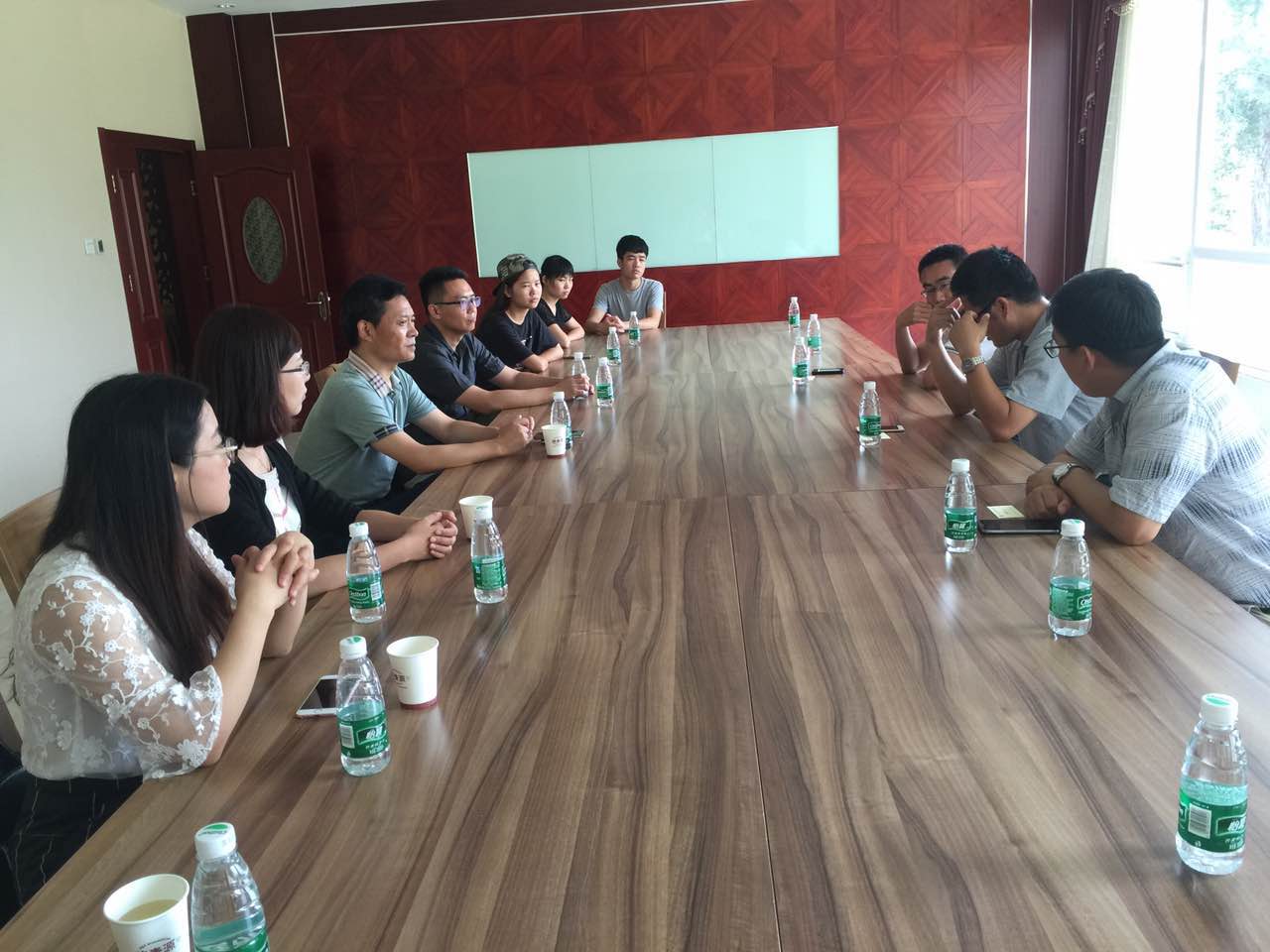 | 樊书记(左三)、杨书记(左二)、等与实习生亲切交流 |