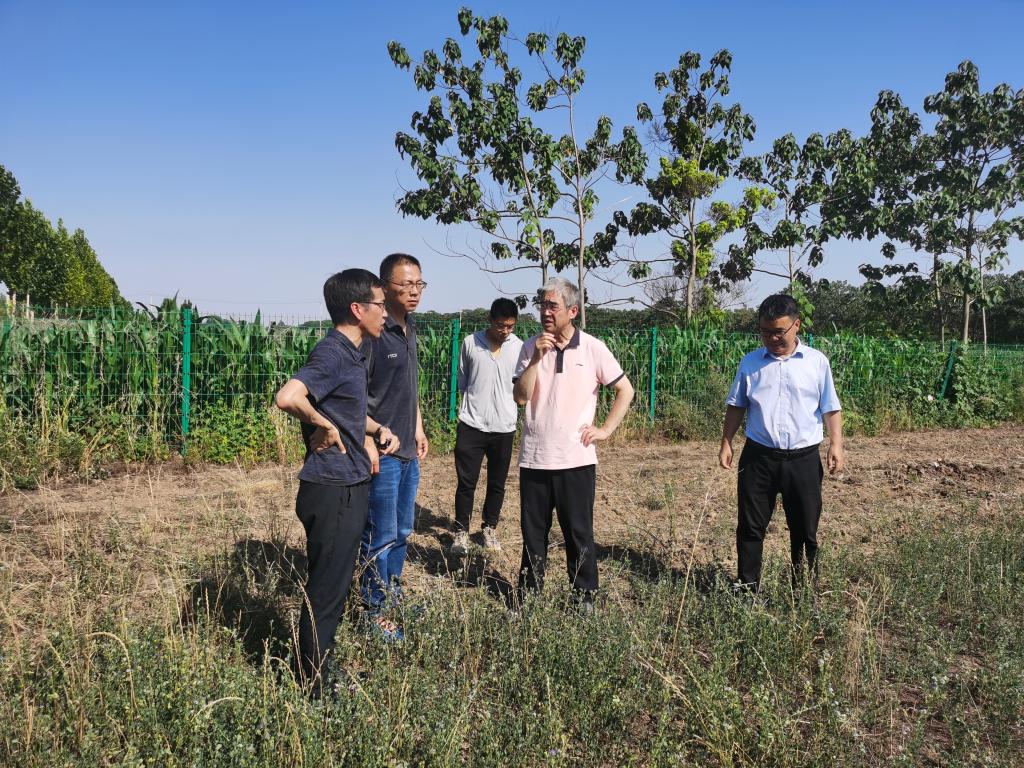 然后,科技特派员一行到沈丘槐山羊工程技术研究中心,大家不畏酷暑,深入到田间地头,协助该中心筹划建设优质示范混播草地,通过实地调查和分析,就草地建植前土壤整地,杂草防除、草种选择、草种搭配和混播技术进行细致的筹划,并且逐步落实,预计在中秋前建成,可用于槐山羊核心繁殖群的就近放牧利用。
