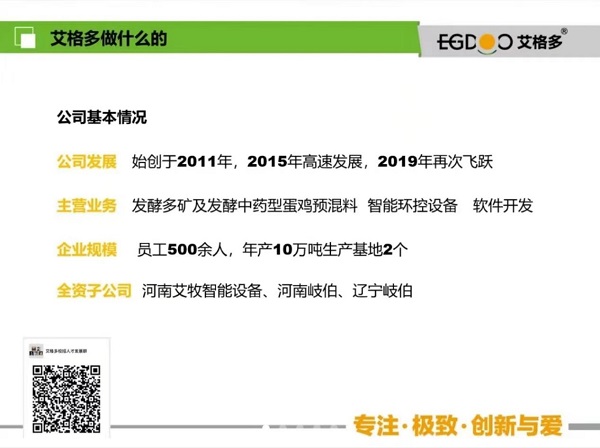 首先,宣讲会负责人对公司的基本情况进行了着重介绍。该集团是创始于2011年的一家集饲料核心技术研究、人工智能设备开发、农牧管理软件开发、饲料生产与销售于一身的全国性企业。企业发展至今旗下拥有四大经营实体,并且在各个领域都有自己的独特优势。然后,负责人进一步讲述了集团的发展历程及众多专利和奖项,并提出企业宗旨和企业精神。最后,负责人提出了百人练兵计划及集团福利并展示了该集团培训计划和晋升通道。