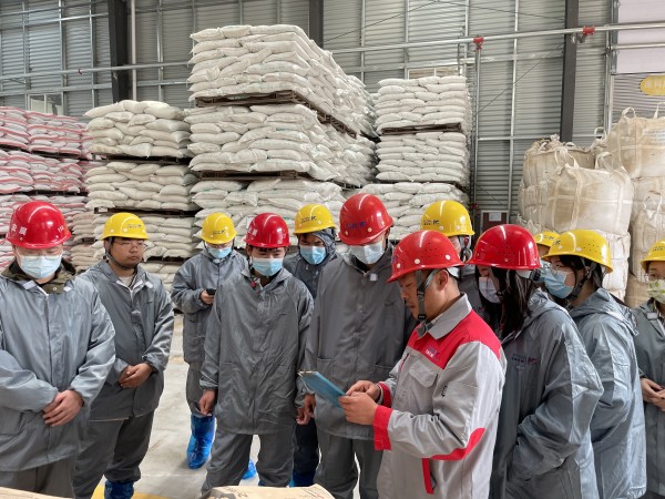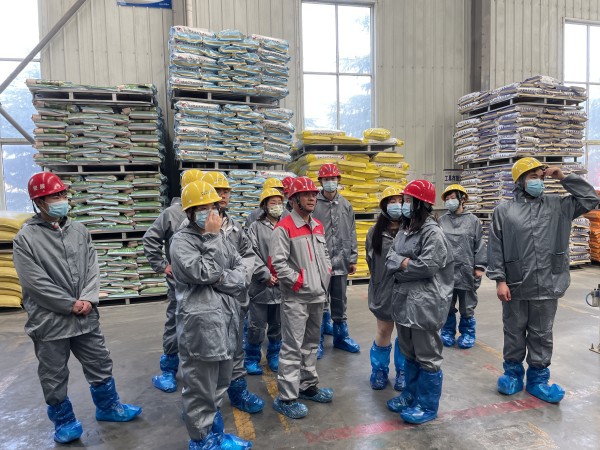 大家首次参观了预混料车间,生产部经理赵红利、行政部经理汪军亲自带领参观。看了预混料车间、成品库、机械手码垛区、全价料成品库、中控室后,同学们都十分感慨,“我们实习虽然见过一些饲料厂,如此干净规范,整齐划一还是第一次见到”。