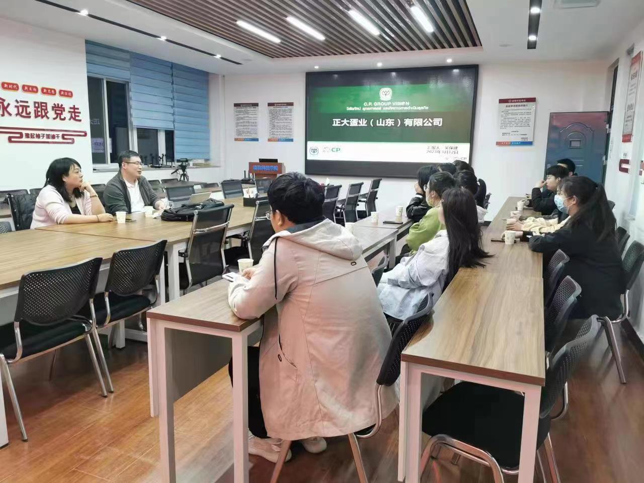 3月12日,beats365官方网站顺利举办正大蛋业(山东)有限公司招聘宣讲会。本次宣讲会主题为“正能量,大梦想”,主讲人为正大集团(山东)有限公司青年鸡场负责人吴保建,李建伟及20多名毕业生出席宣讲会。