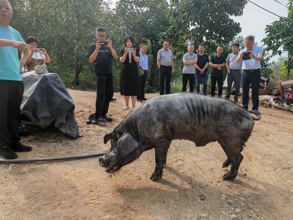 孙飞舟一行赴三门峡卢氏县天社豫西黑猪养殖基地、洛阳栾川县亨利养殖专业合作社调研了豫西黑猪种质资源保护利用情况,赴南阳内乡牧原黑猪保种场调研了南阳黑猪种质资源保护利用情况,实地查看和通过监控视频查看了项目制作遗传材料的猪群,详细了解了项目进展情况。