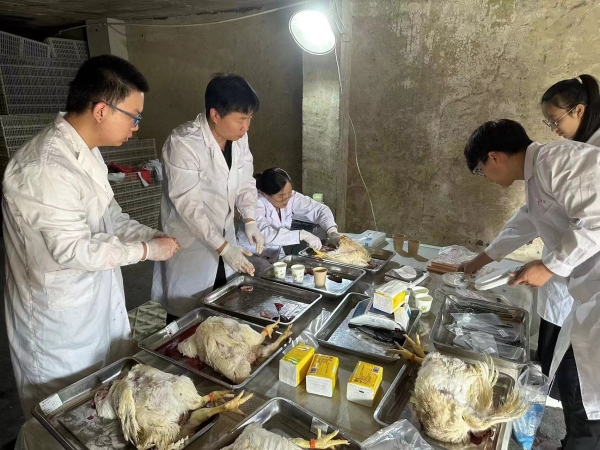 9月19日-20日,beats365官方网站郭良兴博士、聂芙蓉副教授、继续教育公司副经理周延州一行,冒着暴雨来到河南田中禾农牧有限公司开展肉鸡无抗养殖技术服务工作。