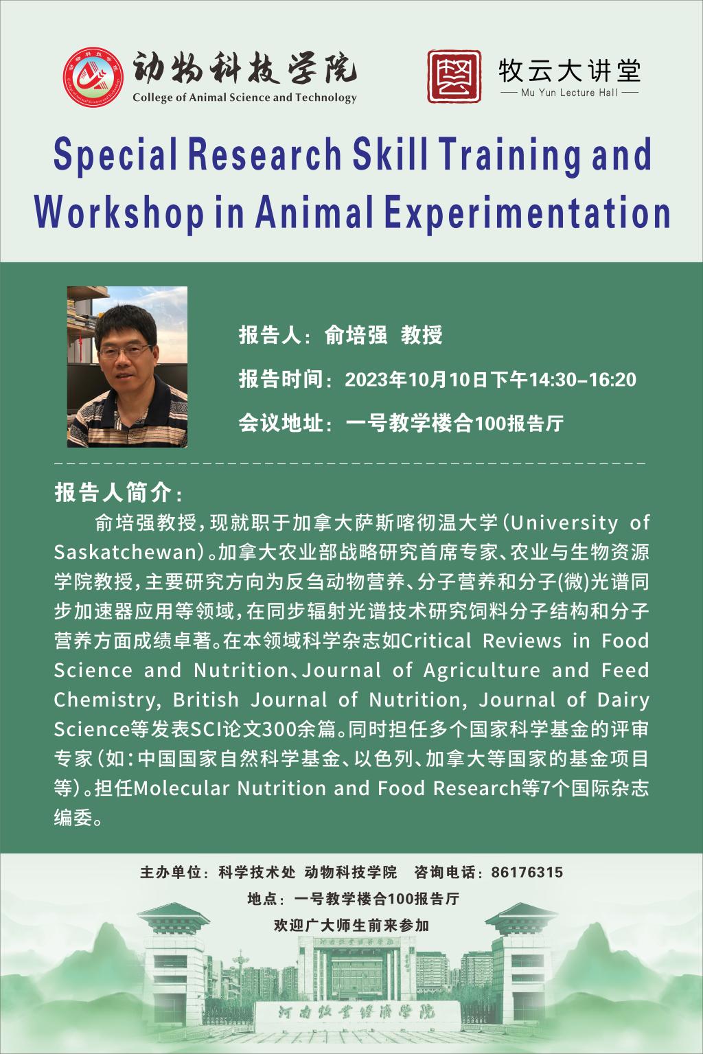 公司举办“牧云大讲堂”第二十八场专题报告会——《Special Research Skill Training and Workshop in AnimalExperimentation》