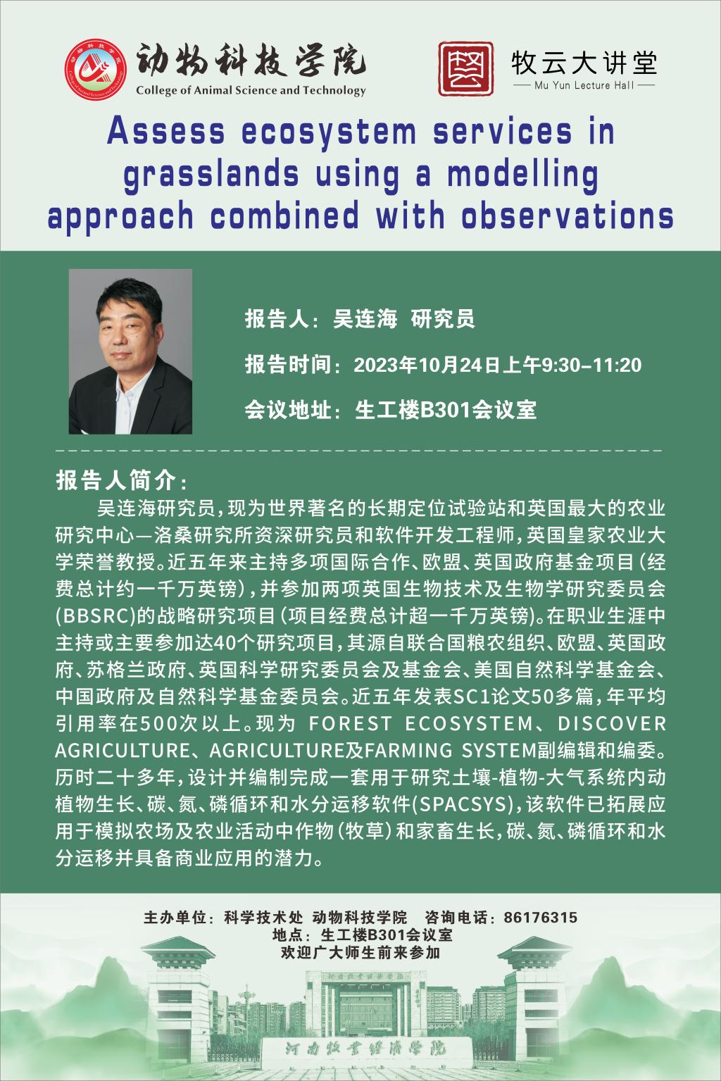 海报——“牧云大讲堂”第三十二场专题报告会《Assess ecosystem services in grasslands using a modelling approach combined with observations》
