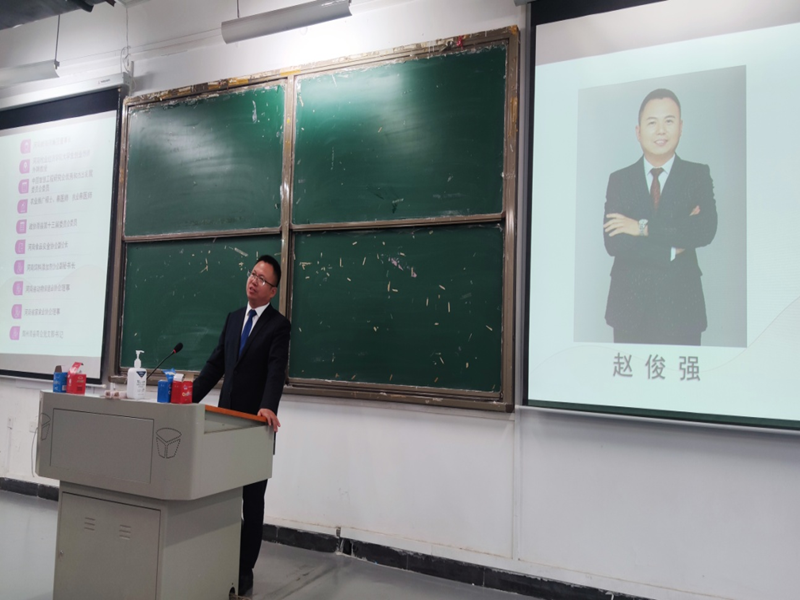 首先韩占兵教授围绕公司定位、公司基本情况、行业现状、专业建设、员工发展5个方面展开具体介绍。韩教授详细介绍了畜牧行业猪禽牛羊的发展现状与河南省畜牧业人才强生对专业人才的需求,鼓励同学们努力学习,全面发展,积极参加各类比赛,不断提升自己的专业技能与创新能力