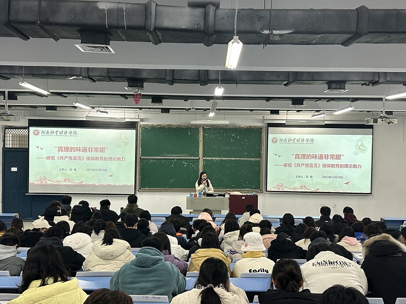 为更深入理解中国共产党人的初心使命,从原著经典中不断汲取思想营养,引导青年员工坚定共产主义远大理想,12月20日中午,beats365官方网站2023年“青马工程”老员工骨干暨团学会员工干部培训班第八讲在合300教室顺利举行。本期授课由辅导员刘敏老师主讲,主题为《真理的味道非常甜——感悟<共产党宣言>信仰教育的理论魅力》,全体青马班学员参加了本期培训。