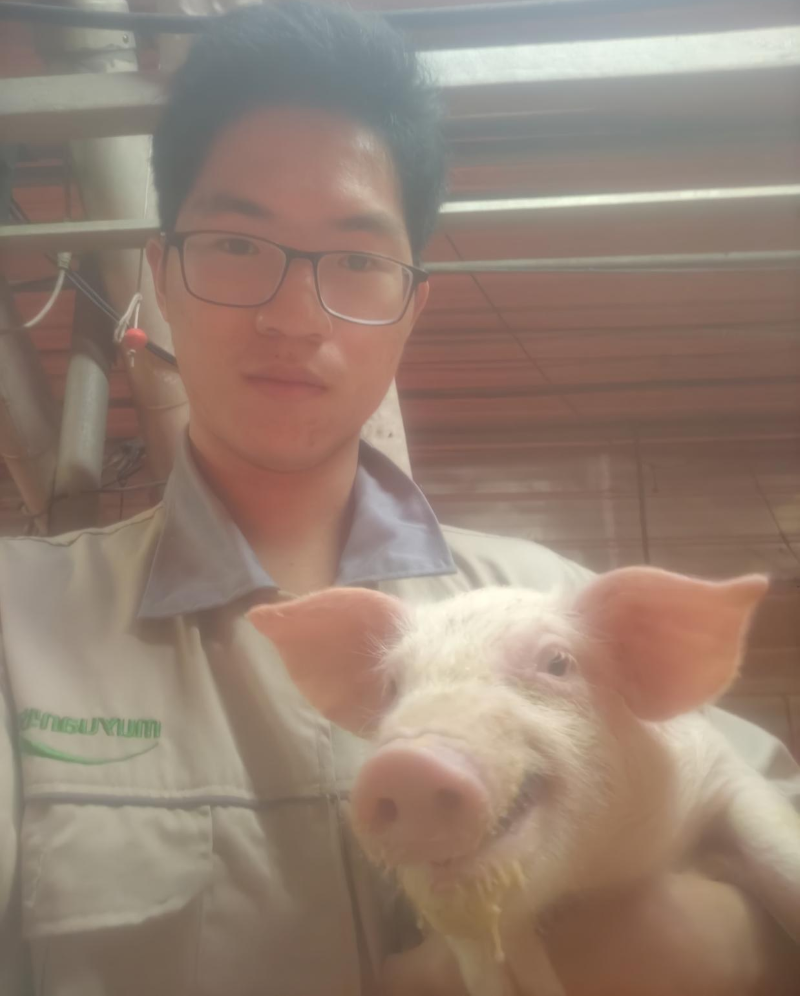 22动科03何志文同学,为了将所学融入实践,积极开展专业实习,在上蔡牧原九场二区生长场保育段养小猪,在与猪打交道的三十多天里,我学会了很多猪疾病的诊断与治疗方法。猪咳嗽,发烧,咬耳,皮炎,拉稀… 这些情况下怎么办?猪的最适温度,湿度,氨气浓度,通风,消毒…这些日常猪舍环境调控。最后,希望大家多融入社会,躬身入局,知行合一多去与自己专业相关的工作岗位实习,了解最新动向,跟上时代发展!