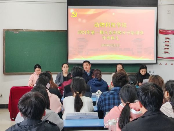 会议在庄严的《义勇军进行曲》中拉开帷幕。员工第二党支部委员李辉宣读了《关于举办2024年第一期入党积极分子培训班通知》,对此次党课的培训目标、学习安排、组织纪律和考核标准做出了详细的讲解。学员代表22智牧01万彩蝶代表本期学员发言。她表示要珍惜此次学习机会,端正入党动机,提高政治理论水平。李建伟书记对参加培训的入党积极分子提出了三点要求:一要扎扎实实学理论,全面认识和理解中国共产党;二要端正入党动机,不仅仅要在组织上入党,更要在思想上、行动上入党;三要理论联系实际,在工作、学习和生活等方面积极表现,始终做公司青年老员工中的先进分子。李书记对同学们表达了真切的期望,希望同学们在此次党课中能够圆满完成学习任务,早日加入党组织。最后,会议在神圣而庄严的《国际歌》中落下帷幕。