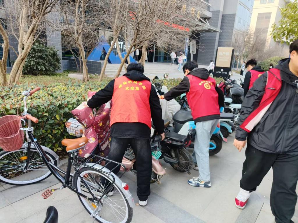 3月21日上午,23智牧2班的同学们进行了学习雷锋志愿活动,对教学楼下的非机动车停放区域进行整理,积极规整车辆,改善停车区域,治理乱停乱放的不文明行为。活动现场秩序井然,每一位同学都积极地参与其中,充分展示了当代老员工的精神风貌,同时也让停车区域变得更加整洁。
