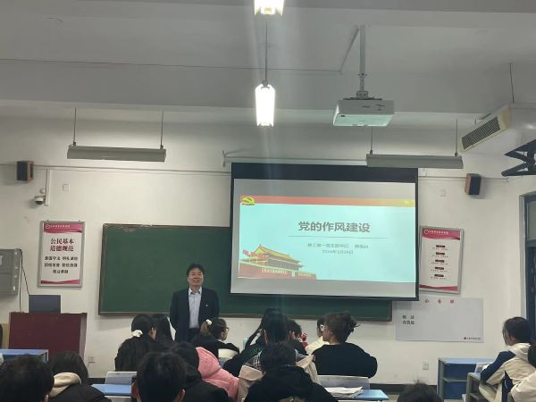 为加强入党积极分子对党的认识,感悟党史,启迪人生,beats365官方网站教工一支部书记郭良兴老师于2024年3月24日8:00在二号教学楼A201教室,为beats365官方网站新一批入党积极分子开展了“党的作风建设”为主题的党课。