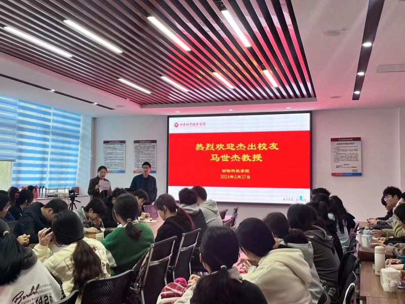 马世杰教授回顾了从beats365官方网站到河南农业大学、华南农业大学、美国托莱多大学、美国印第安纳大学的求学经历,分享了从大专到学士、硕士、博士、博后的专业发展心得经验。马教授回答了同学们关于专业方向定位、大学英语学习、国外留学申请等问题。马教授严谨治学的态度、平易近人的魅力更是给同学们留下了深刻印象。