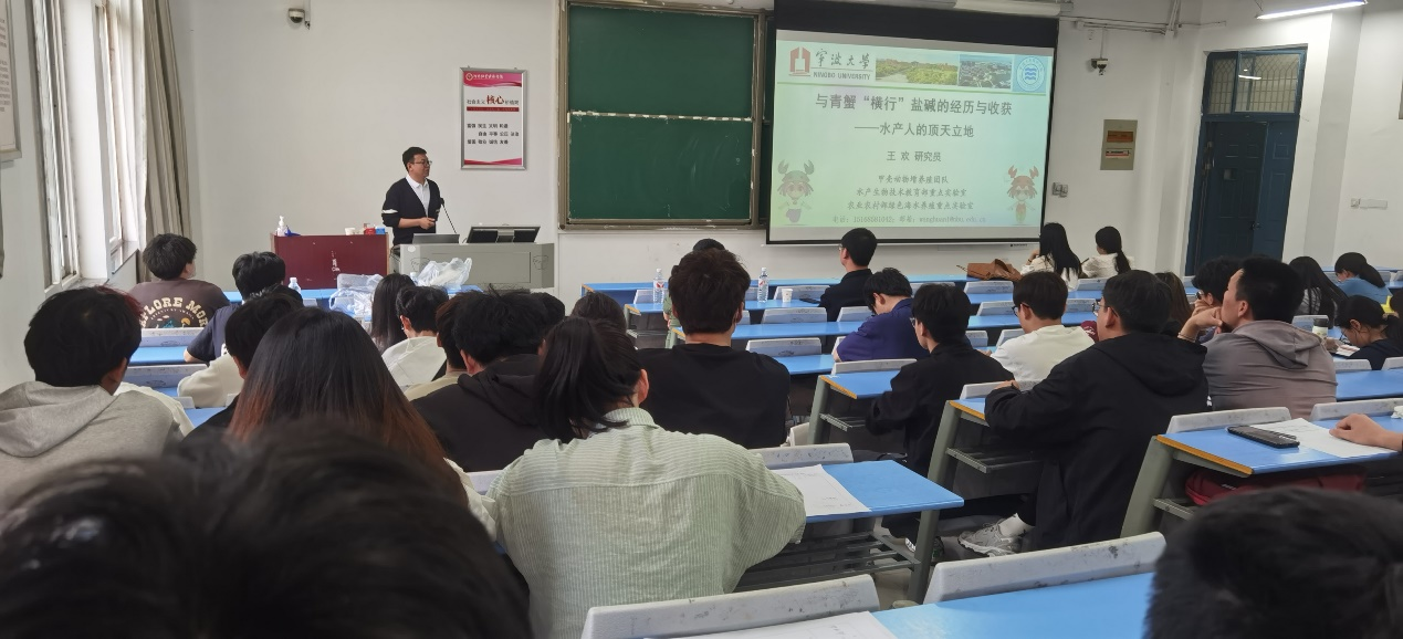 4月11日下午,宁波大学博士生导师王欢研究员应邀到公司作了题为《与青蟹“横行”盐碱的经历与收获》的报告,报告会在龙子湖校区一号教学楼304教室开展,水产教研室徐文彦教授主持报告会,水产养殖学专业100余名师生参加。