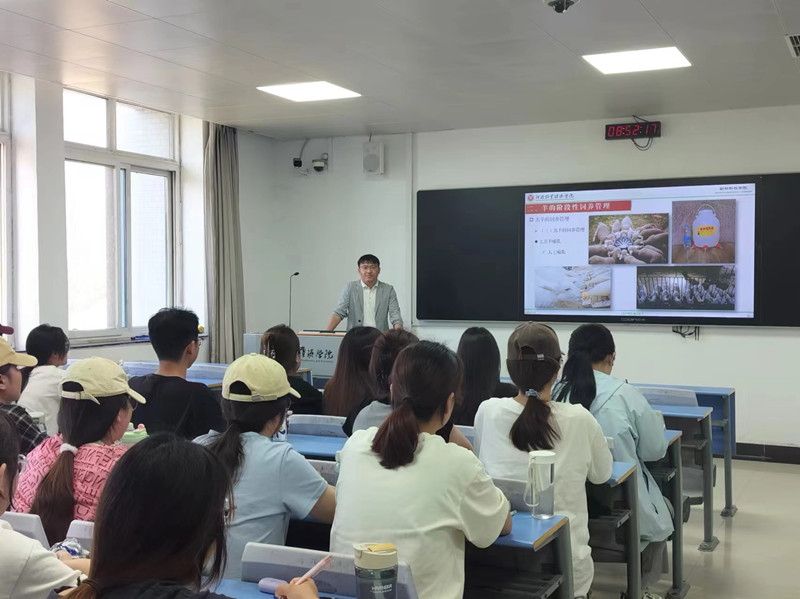 2024年5月14日在2号教学楼A307举办了由施会彬博士主讲的《羊生产技术》交流型观摩课。本节课程的重点是羊的饲养管理,施老师通过运用BOPPPS教学方法,先以幻灯片的形式介绍了不同的养殖场景,引出了羊的三种饲养管理模式。随后,施老师详细深入地讲解了不同的生产管理模式,并通过提问、互动和小测验等形式,激发同学们的学习兴趣,使其对羊的饲养管理有了全面的认识。