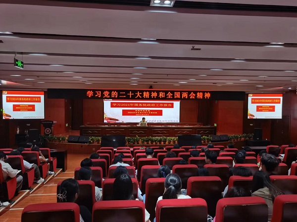 李老师首先带领大家回顾了党的一大到十九大,领略历次召开的全国代表大会所具有的特殊历史意义,以此回顾中国共产党的百年光辉奋斗历程。并由此提出,党的二十大是处于关键历史关口的一次重要大会,是全党全国各族人民迈上全面建设社会主义现代化国家新征程、向第二个百年奋斗目标进军的关键时刻召开的一次十分重要的大会,科学谋划未来五年乃至更长时期党和国家事业发展的目标任务和大政方针。接着,李老师通过十五个关键词带领大家“数读报告”,同时将报告中提到的重要思想和精神与大家的日常生活紧密结合,帮助大家更深入地学习并感悟党的二十大精神,从而明确自己如何做好新时代青年。最后,李老师从“两会知识科普”、“全国两会常用词”、“2023年全国两会”、“今年两会新看点”、“今年政府工作报告简版”这五个方面展开。李老师在讲“今年政府工作报告”这部分时特别强调了报告中的“要加强就业和社会保障,完善就业促进政策,推出创业引领计划,高校毕业生就业稳中有升”,李老师认为高校毕业生的就业水平和就业稳定率关系到国家的繁荣稳定、社会的进步发展,在全面贯彻党的二十大精神开局之年的工作部署中将这个问题摆在突出位置,充分体现了党和政府对高校毕业生的就业问题的高度重视。