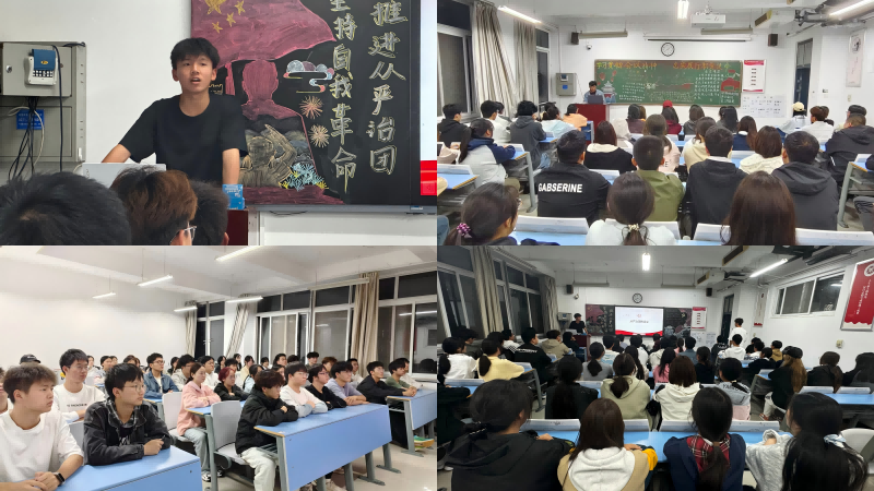 团课开始,全体同学齐唱团歌,随后,主持人通过PPT、图片、视频等多种方式使同学们认识到自我革命的重要性,也知道了坚持党的全面领导是全面从严治团的根本保证和灵魂所在。紧接着,主持人和同学们积极互动,同学们深刻认识到只有不断学习、不断进步,才能在日益激烈的社会竞争中立于不败之地。团课最后,主持人发表演讲引导同学们坚持自我革命,同时,他们也要勇于承担起时代的重任,积极投身社会实践,在生活中更加积极向上。随着团歌再次响起,本次团课落下帷幕。