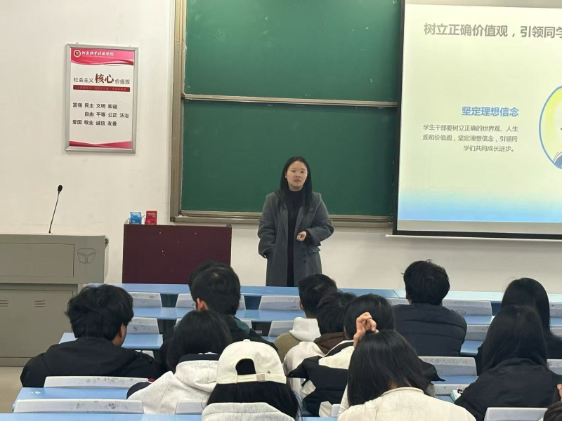 吴姣首先向学员们介绍了最新修订版的《中国共产主义青年团章程》,接着从团员、团的组织制度、团的中央组织和地方组织、团的纪律等内容展开讲解,并对规范使用团旗、团徽、团歌进行了强调,最后他希望全体学员要深入理解共青团的性质、任务和职责,全面了解团员的权利和义务,明确自己的责任,树立正确的理想信念,增强组织观念和纪律意识,感受时代赋予的使命。