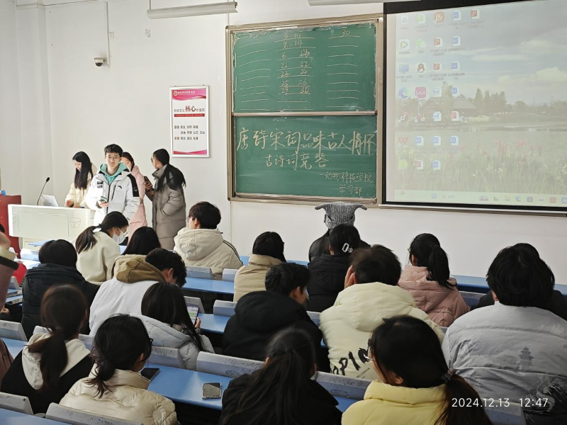 活动现场,参赛者们个个精神饱满、反应迅速。每一次精彩的回答,都彰显出同学们对古诗词深刻且独到的理解,他们以扎实的知识储备和对经典文学的热爱,确保每一句诗词的独特魅力与深刻内涵都能得到完美诠释和充分尊重。这不仅是一场知识的盛宴,更是一次心灵的洗礼,在青年学子的心田播下了热爱古典文学的希望种子。