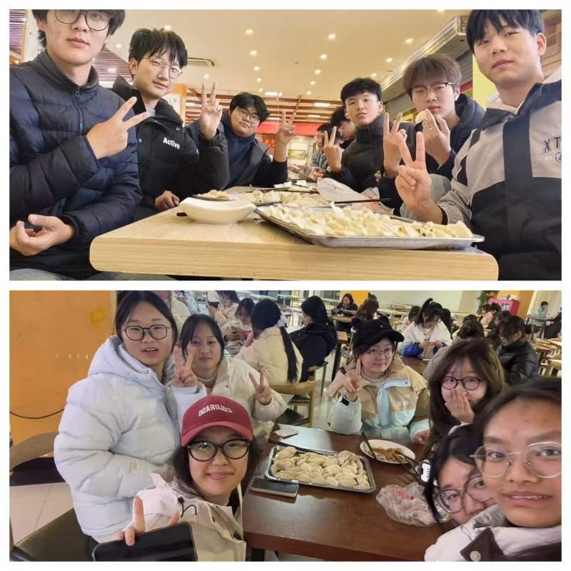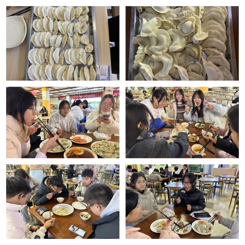 在大家的齐心协力下,一盘盘形态各异却饱含心意的饺子很快摆满了餐盘。随后,热气腾腾的饺子被端上了“餐桌”,同学们围坐在一起,你一言我一语,兴高采烈地品尝着自己的劳动成果。尽管饺子的形状千差万别,味道也参差不齐,但这并不影响同学们脸上洋溢的满足与幸福。每一口饺子都饱含着班级大家庭的温暖与团结,每一声欢笑都传递着同学们之间深厚的情谊。