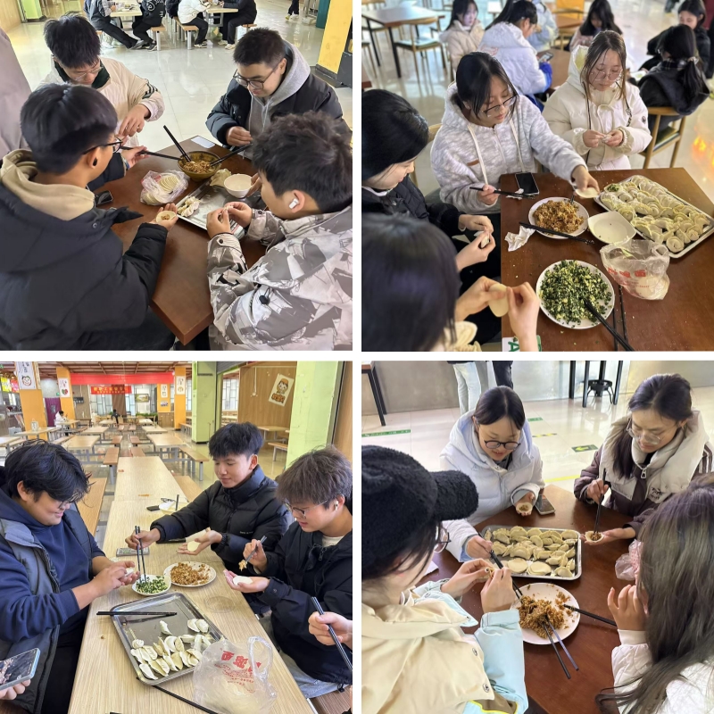 活动伊始,班委们将提前准备好的包饺子食材整齐置于餐厅随园2楼,五颜六色的蔬菜与鲜嫩的肉馅交相辉映,瞬间点燃了同学们的热情。大家迅速以宿舍为单位分组,纷纷化身“饺子大师”,一场别开生面的包饺子大赛就此拉开帷幕。同学们有的手法娴熟,一捏一按间,一个个精致的饺子便跃然指尖;有的则略显生疏,但那份认真与努力丝毫不减,在同伴的耐心指导下逐渐掌握技巧,包出的饺子也有模有样。大家一边包着饺子,一边分享着各自家乡冬至的独特习俗。欢声笑语此起彼伏,弥漫着浓浓的节日气息。