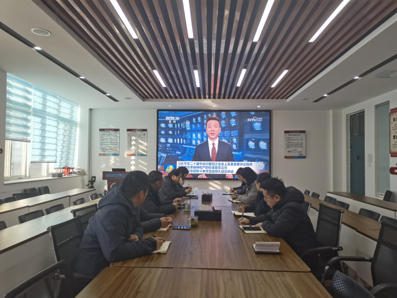 1月16日,公司召开专题会议,传达学习贯彻二十届中央纪委四次全会精神。公司党委书记王建伟主持学习会,院科级以上干部参加。