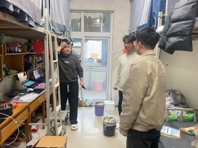 走访过程中,公司老师与各专业员工亲切交流,详细询问同学们在新学期的学习和生活计划,鼓励大家要珍惜时光,努力学习,不断提升自己的专业素养和综合能力。李建伟强调,宿舍不仅是同学们生活的地方,更是培养集体荣誉感和团队精神的重要场所,他希望同学们能够树牢安全意识,及时清理各类安全隐患,共同维护宿舍卫生环境,营造温馨、和谐的宿舍氛围。辅导员同步对寝室安全隐患、卫生状况展开排查,对个别卫生不达标的寝室提出整改要求。