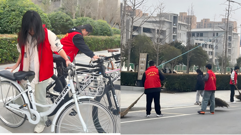 在校园的道路上,大家认真清扫落叶和垃圾,每个环节都衔接紧密有序。同时,同学们还将路旁随意停放的自行车摆放整齐,让校园道路更通畅,也让校园的整体面貌更加井然有序。
